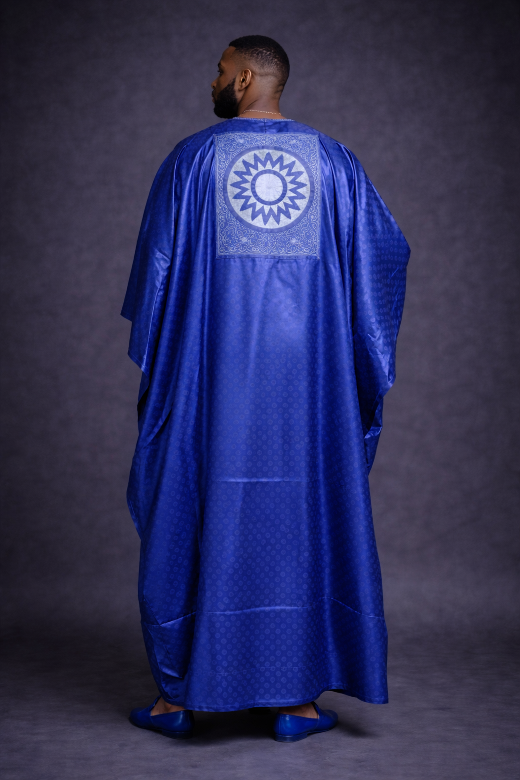 Affirmez votre élégance avec ce Grand Boubou majestueux en damas de haute qualité. Sa couleur bleu royal vibrante et ses broderies artisanales géométriques en font la tenue idéale pour les grandes occasions : mariages, baptêmes ou célébrations religieuses. Une coupe ample et noble qui allie confort et prestige.