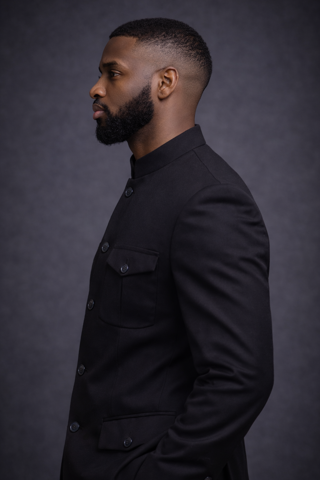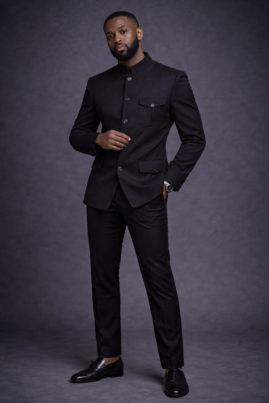 Matière Premium : Confectionnée dans un tissu noir profond et dense, offrant une tenue impeccable qui ne se froisse pas, même après une longue journée.